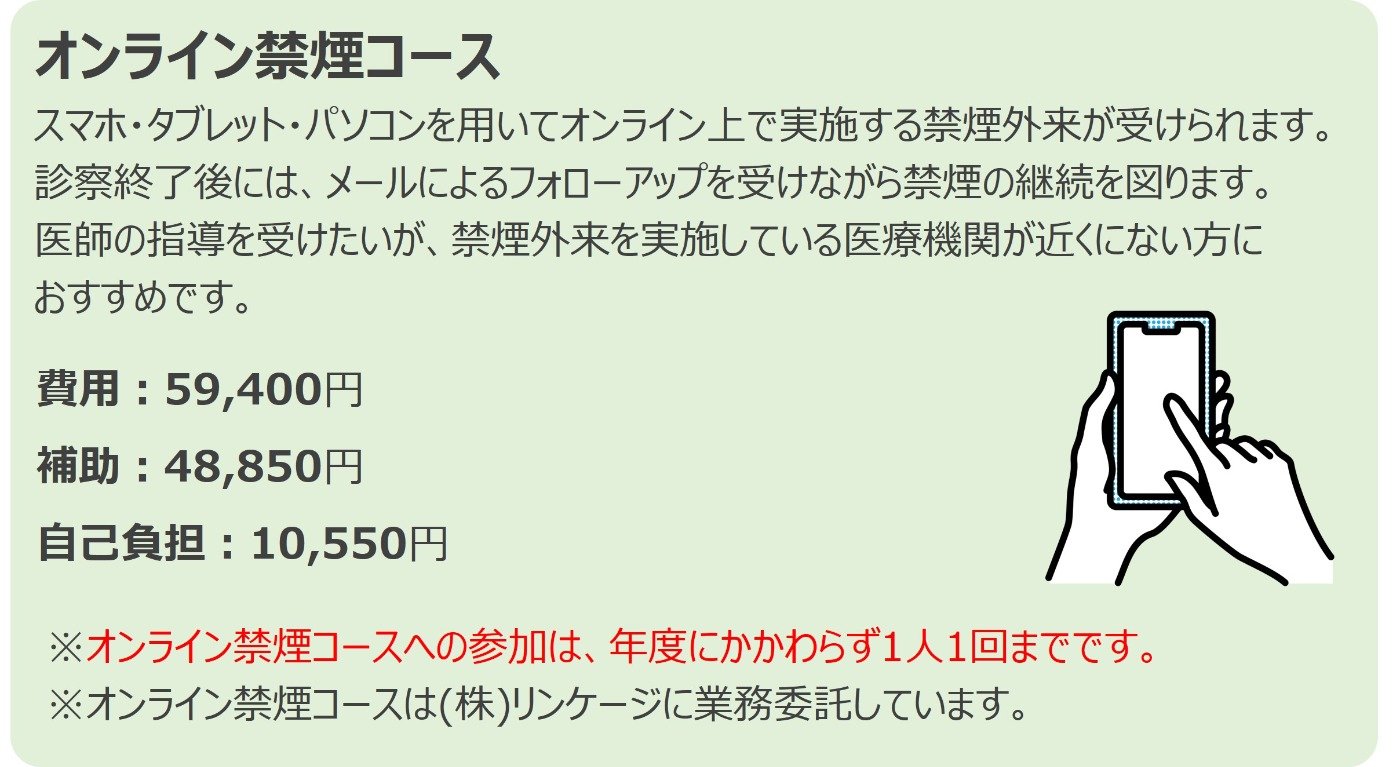 - ※ 禁煙補助剤コース、対面禁煙外来受診コース、オンライン禁煙コース
